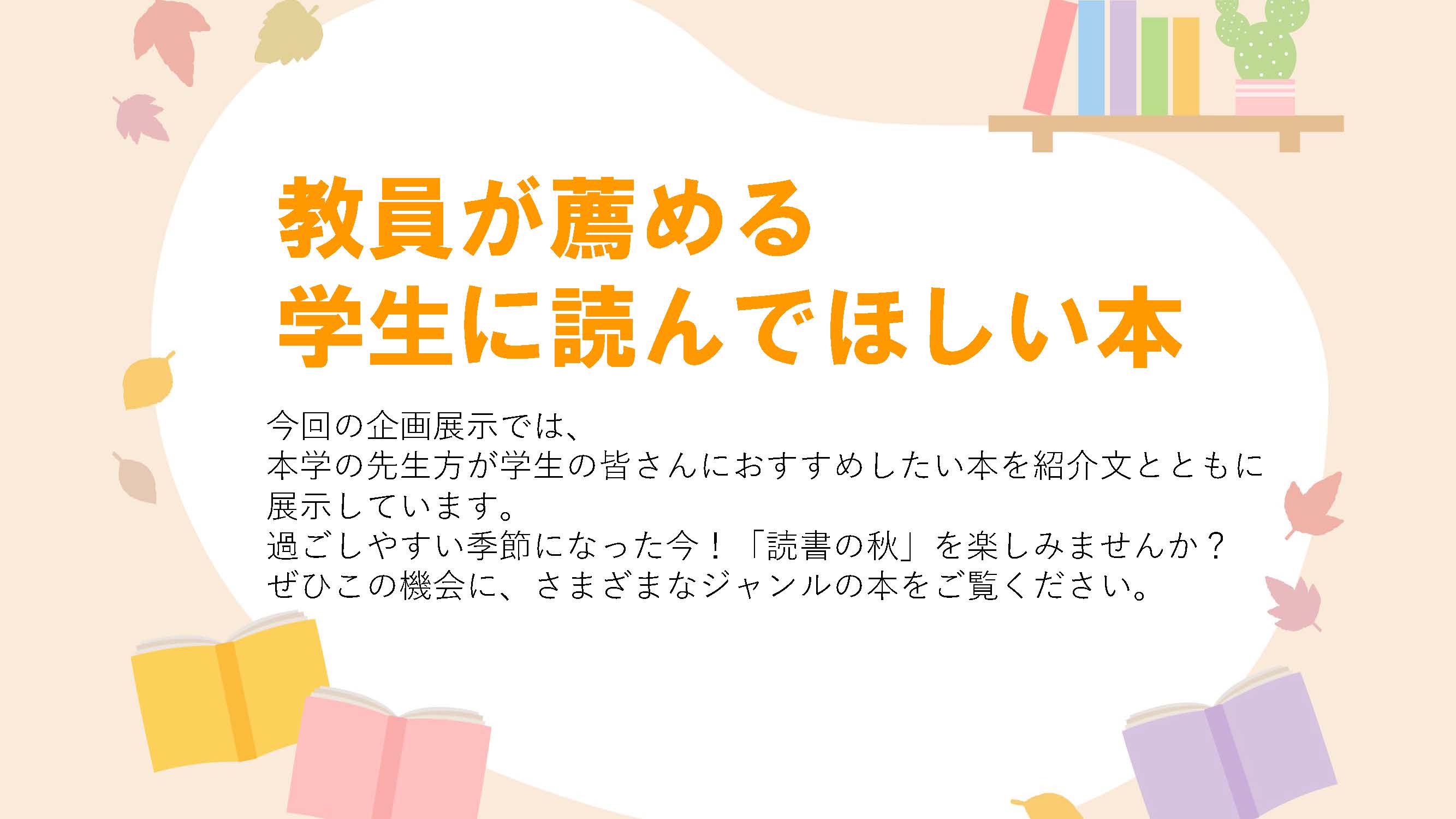 2025年度第2回目の企画展は「教員が薦める学生に読んでほしい本」です。