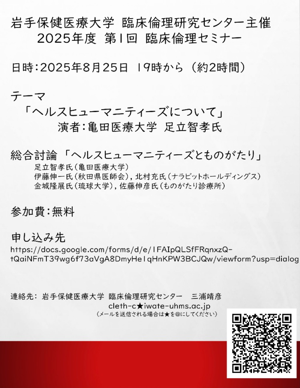 ■2025年度 第1回 臨床倫理セミナー